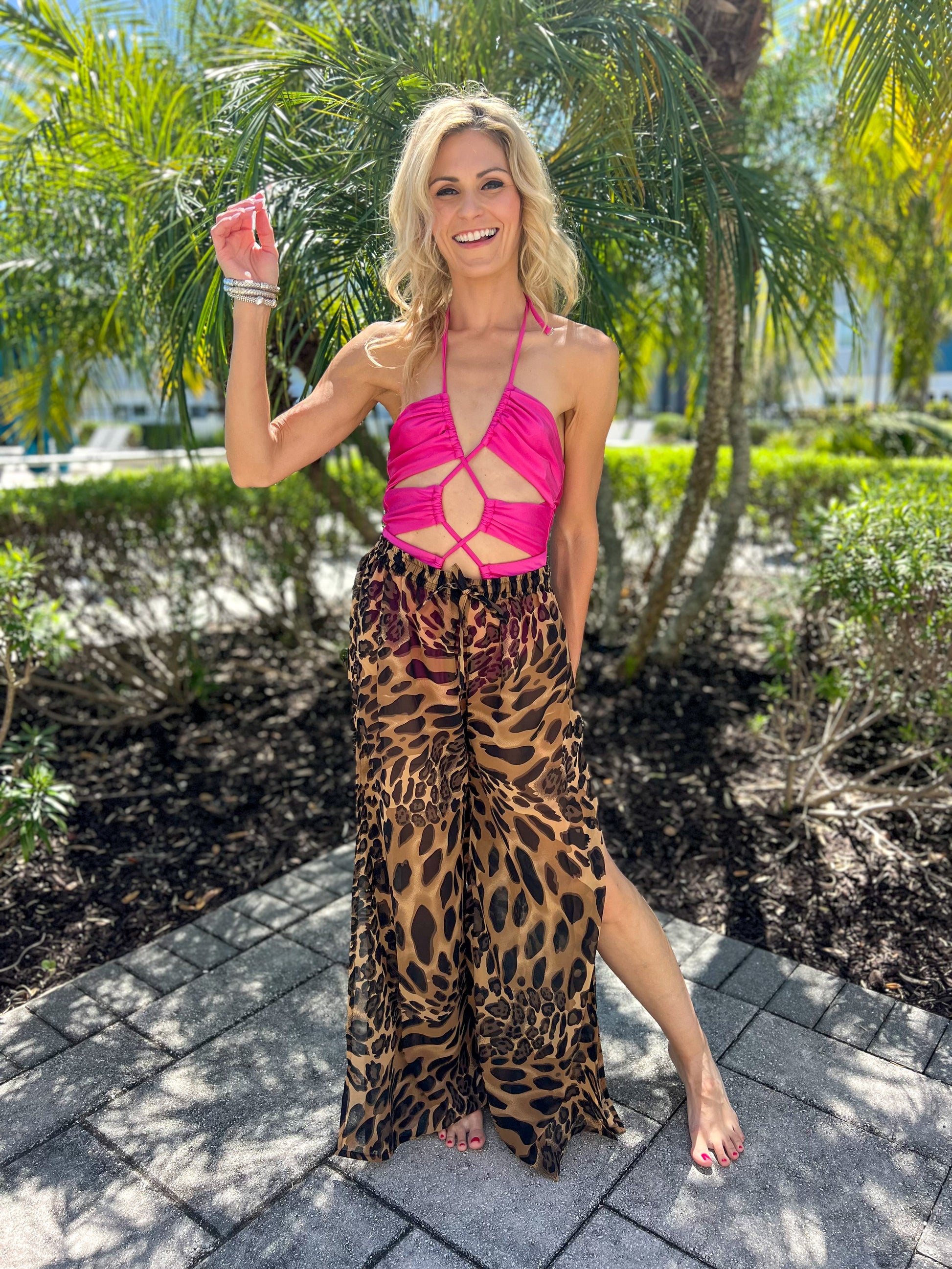 This style is for the bold and fearless! Make a statement showing up in this fun one piece! We love the colors and sheen, and how you can really tie it up to create the perfect fit! This style has a cheeky to thong back coverage depending on your preference!