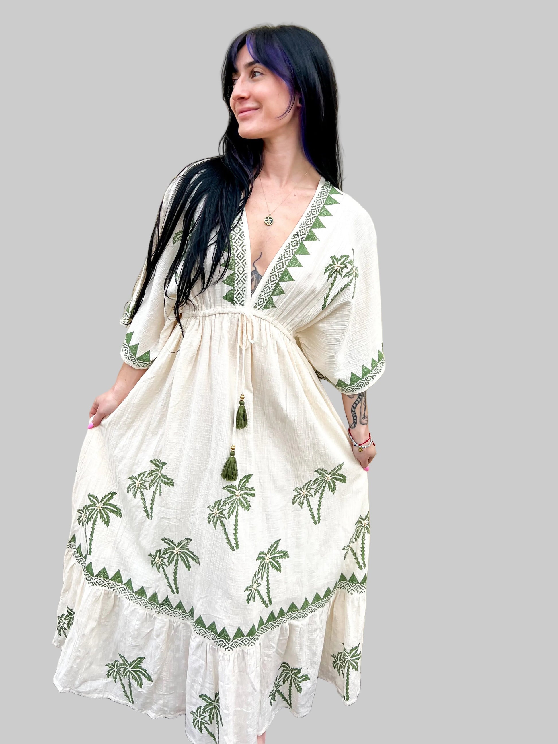 Green Palm Gauze Dress