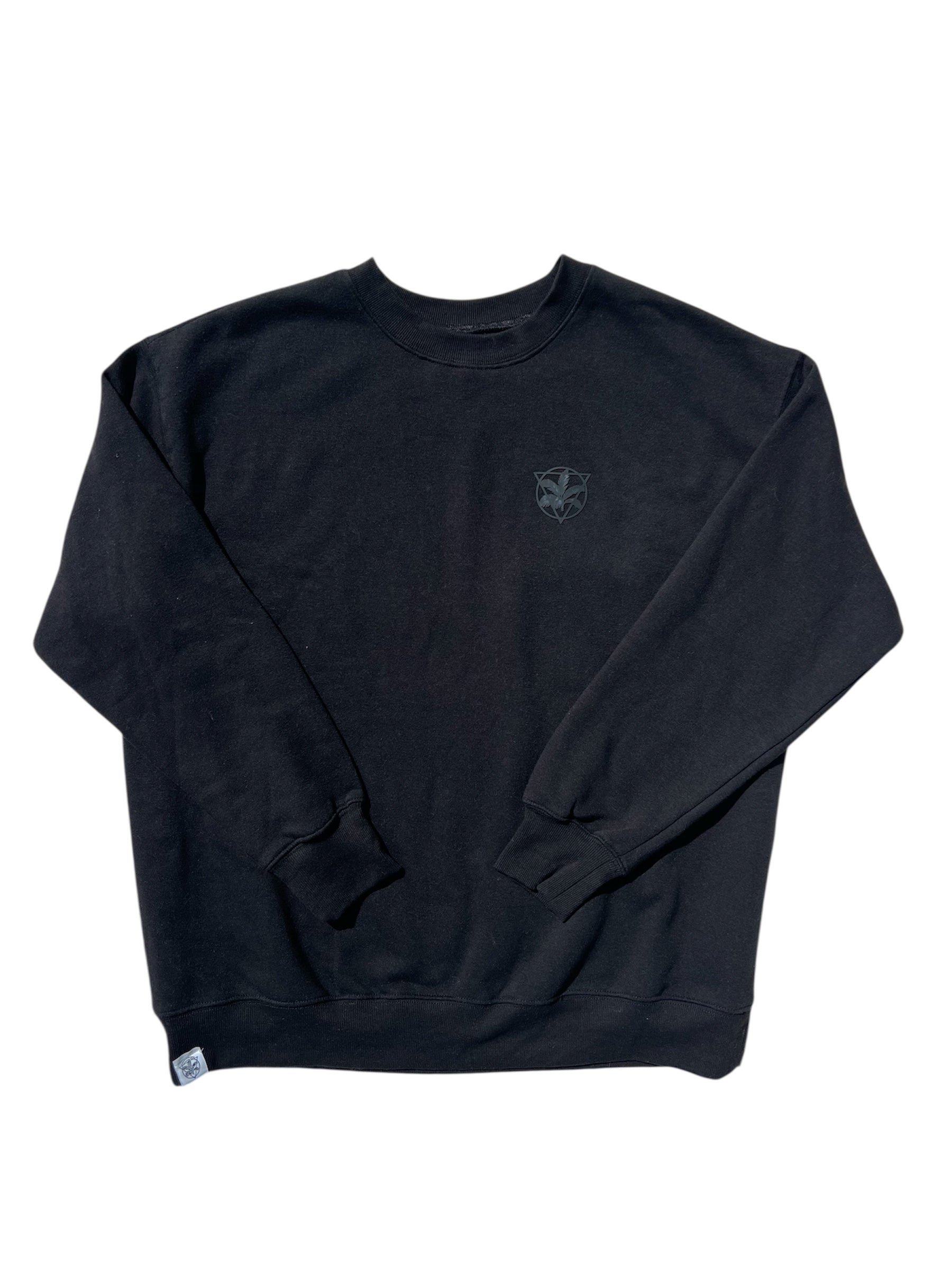 This crewneck fabric is buttery soft and so comfortable! We are loving the black on black with the subtle logo hit.