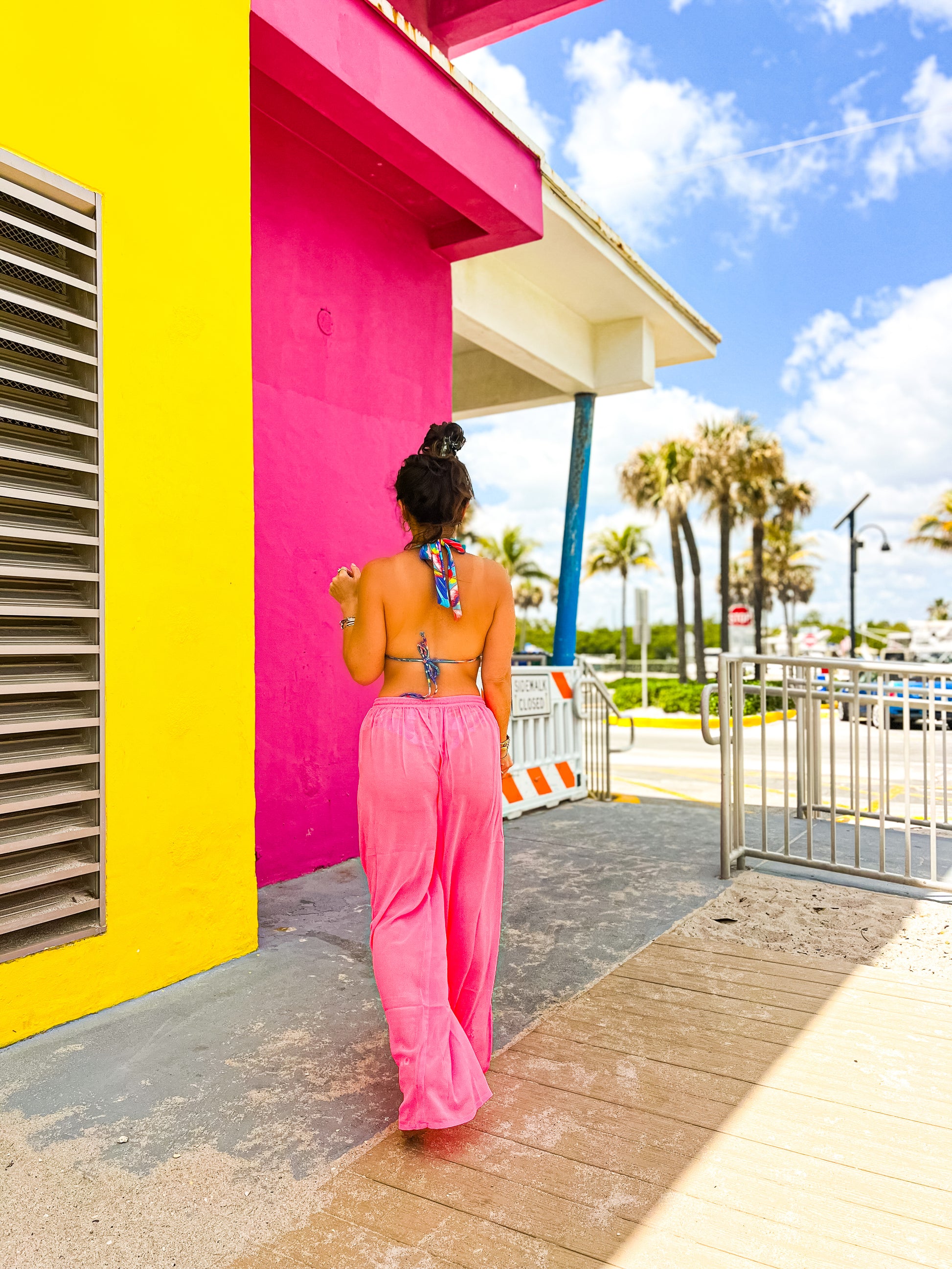 Neon Pink Sheer Beach Pants