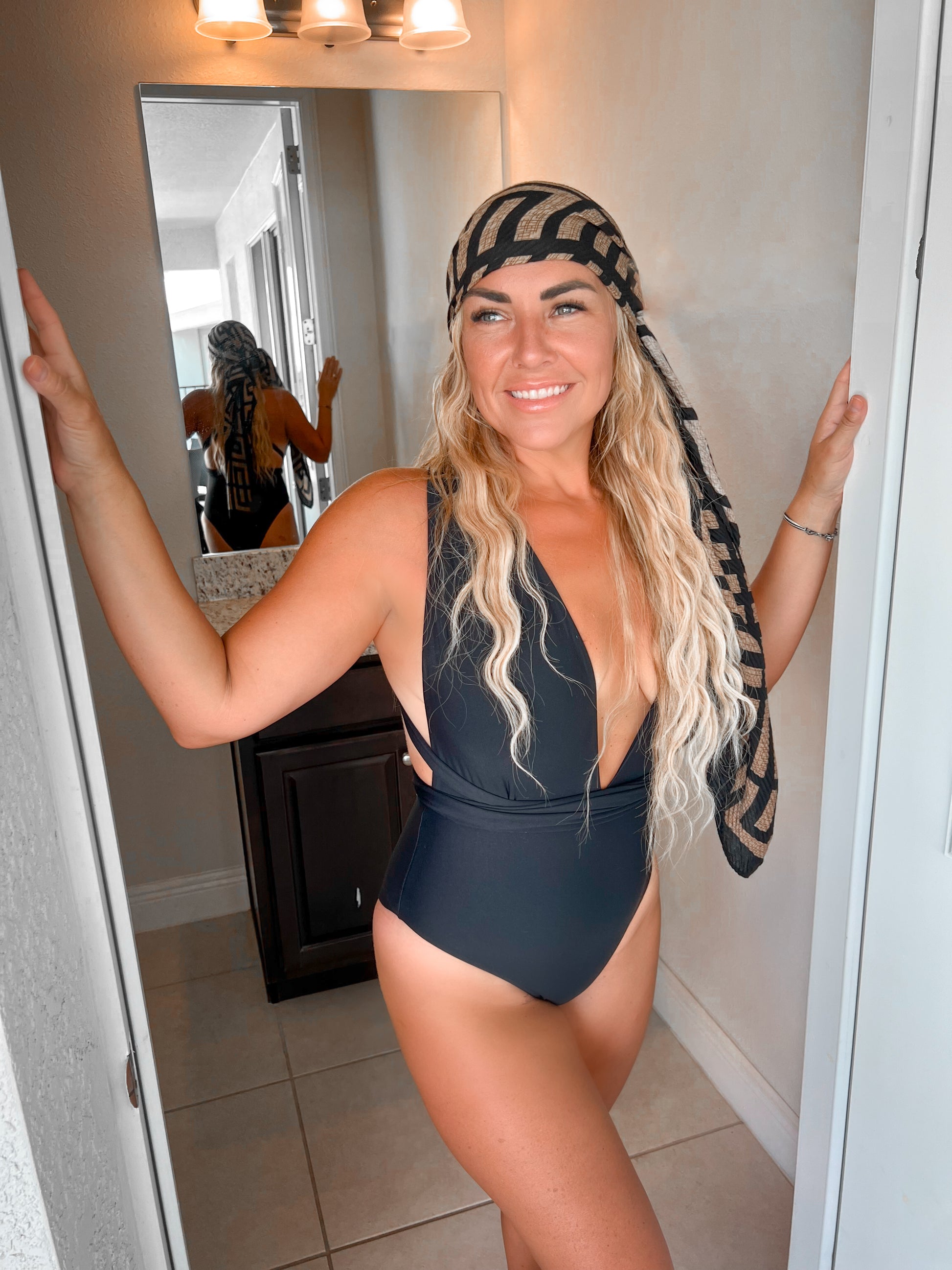 Meet Sienna in a slightly cheeky version! A one-piece option that can be worn limitless ways! The fabric is buttery, and also double lined giving you all of the support, and a full coverage bottom. Style her classy, strappy, twisty, turny…you get the picture! She is made for water, but designed to be styled and outfitted.