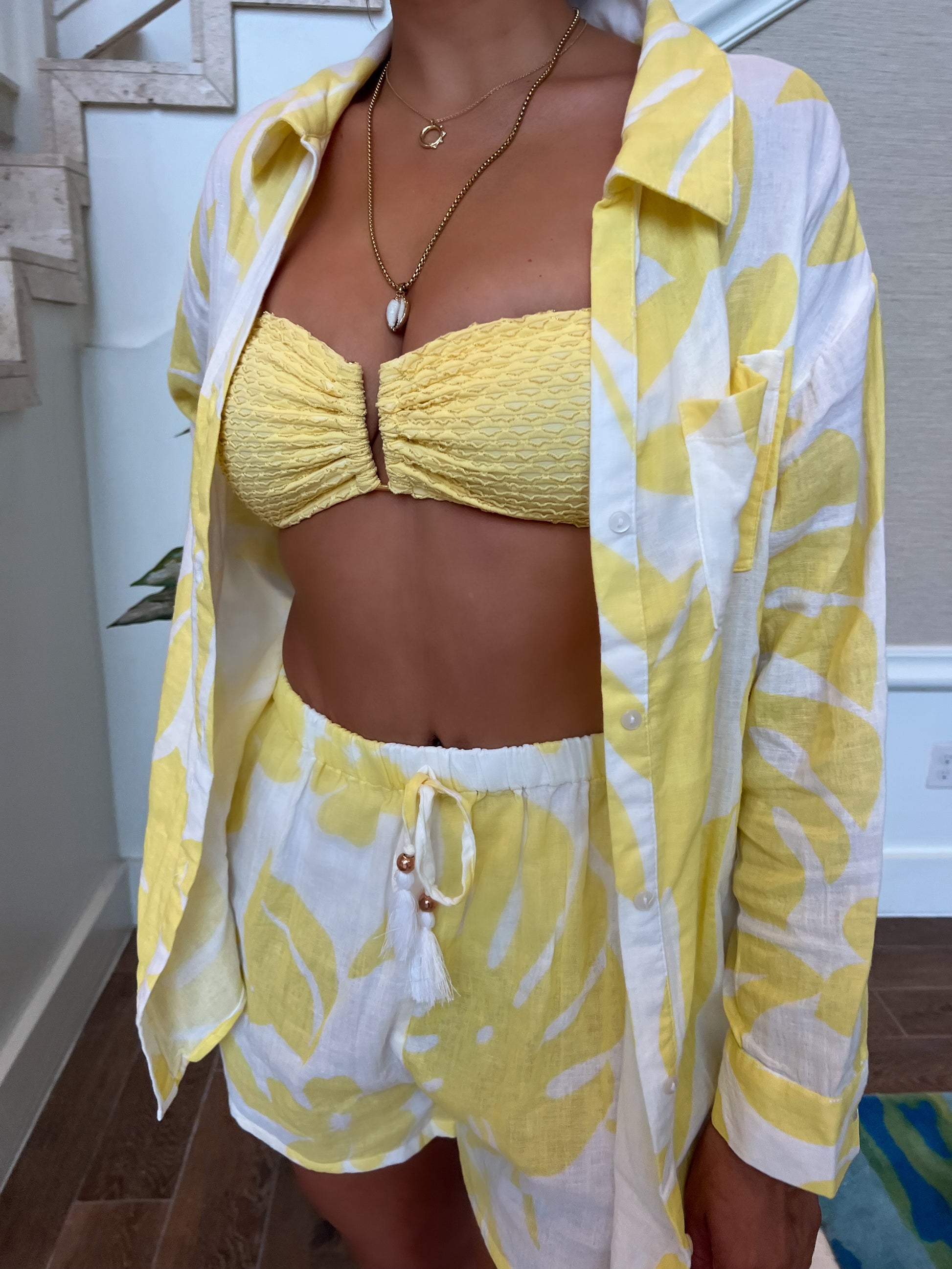 This color and print just makes us smile! This shorts are perfect for a beach trip! We really love them paired with the matching beach shirt!